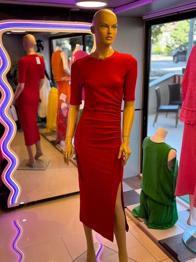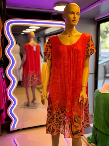 İtaly Turuncu keten ikili elbise (Standart Beden)